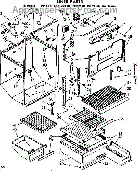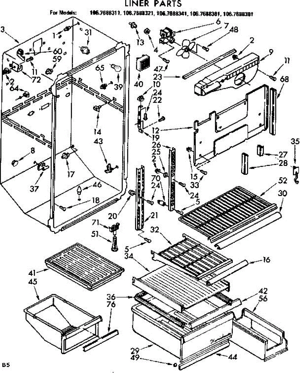 Parts for Kenmore 106.7688341 (1067688341, 106 7688341): Liner Parts
