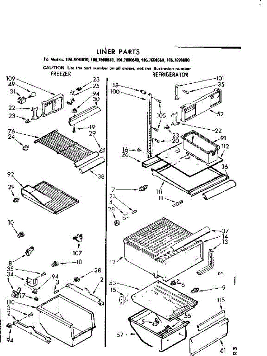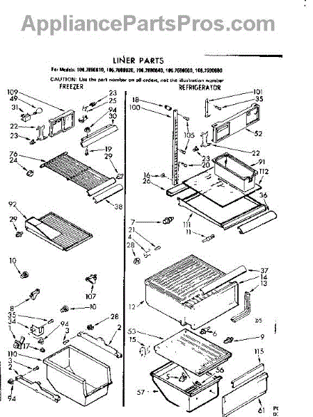 Parts for Kenmore 106.7690680 (1067690680, 106 7690680): Liner Parts