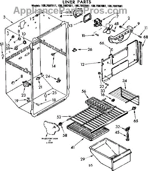Parts for Kenmore 106.7697011 (1067697011, 106 7697011): Liner Parts