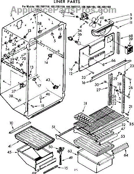 Parts for Kenmore 106.7697740 (1067697740, 106 7697740): Liner Parts