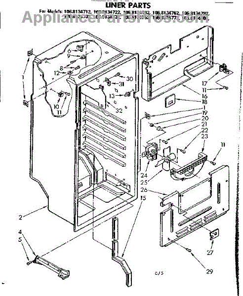 Parts for Kenmore 106.8134742 (1068134742, 106 8134742): Liner Parts