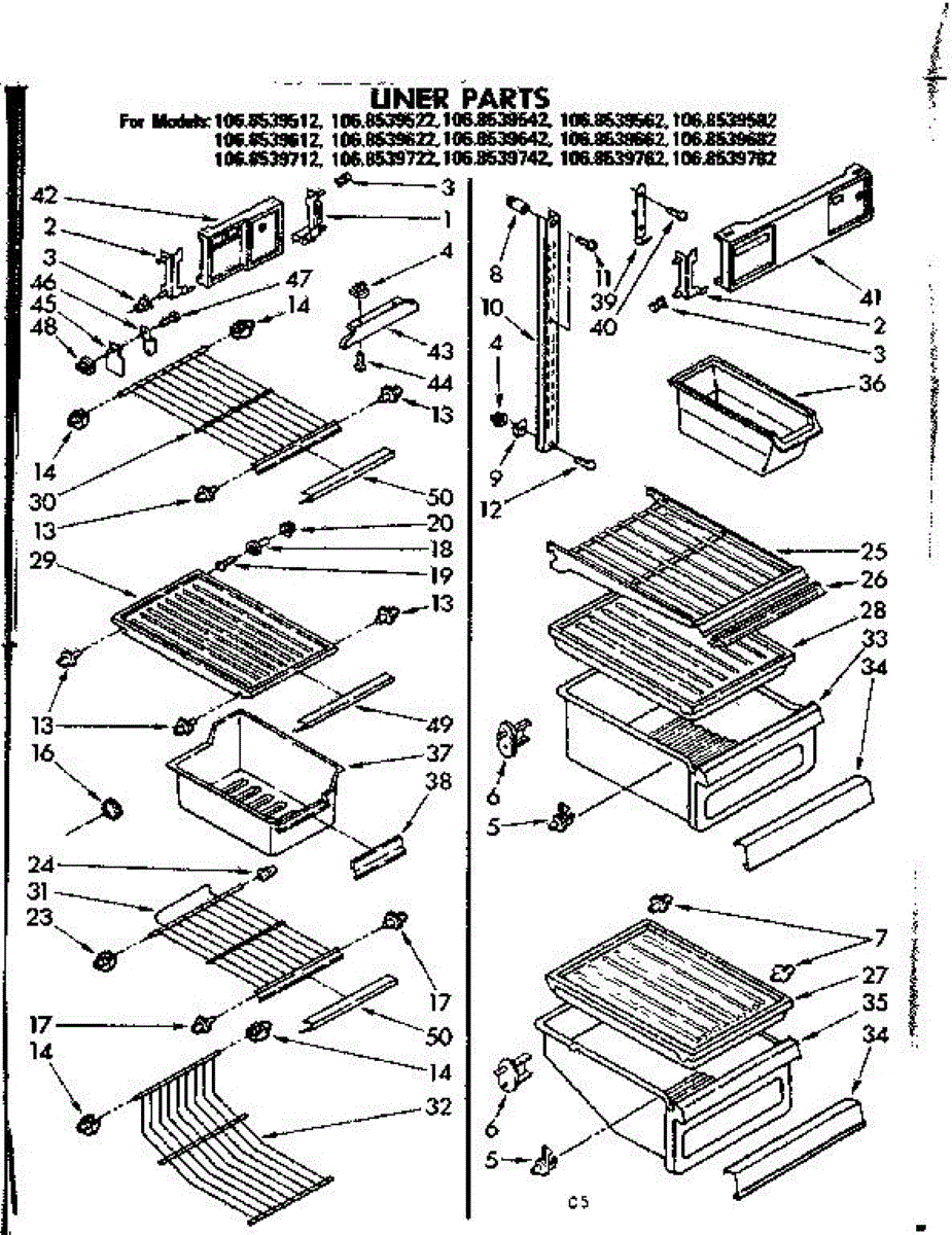 Parts for Kenmore 106.8539562 (1068539562, 106 8539562): Liner Parts