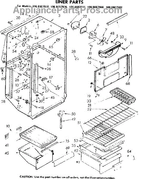 Parts for Kenmore 106.8607916 (1068607916, 106 8607916): Liner Parts