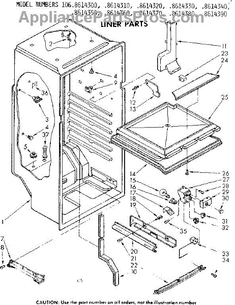 Parts for Kenmore 106.8614340 (1068614340, 106 8614340): Liner Parts