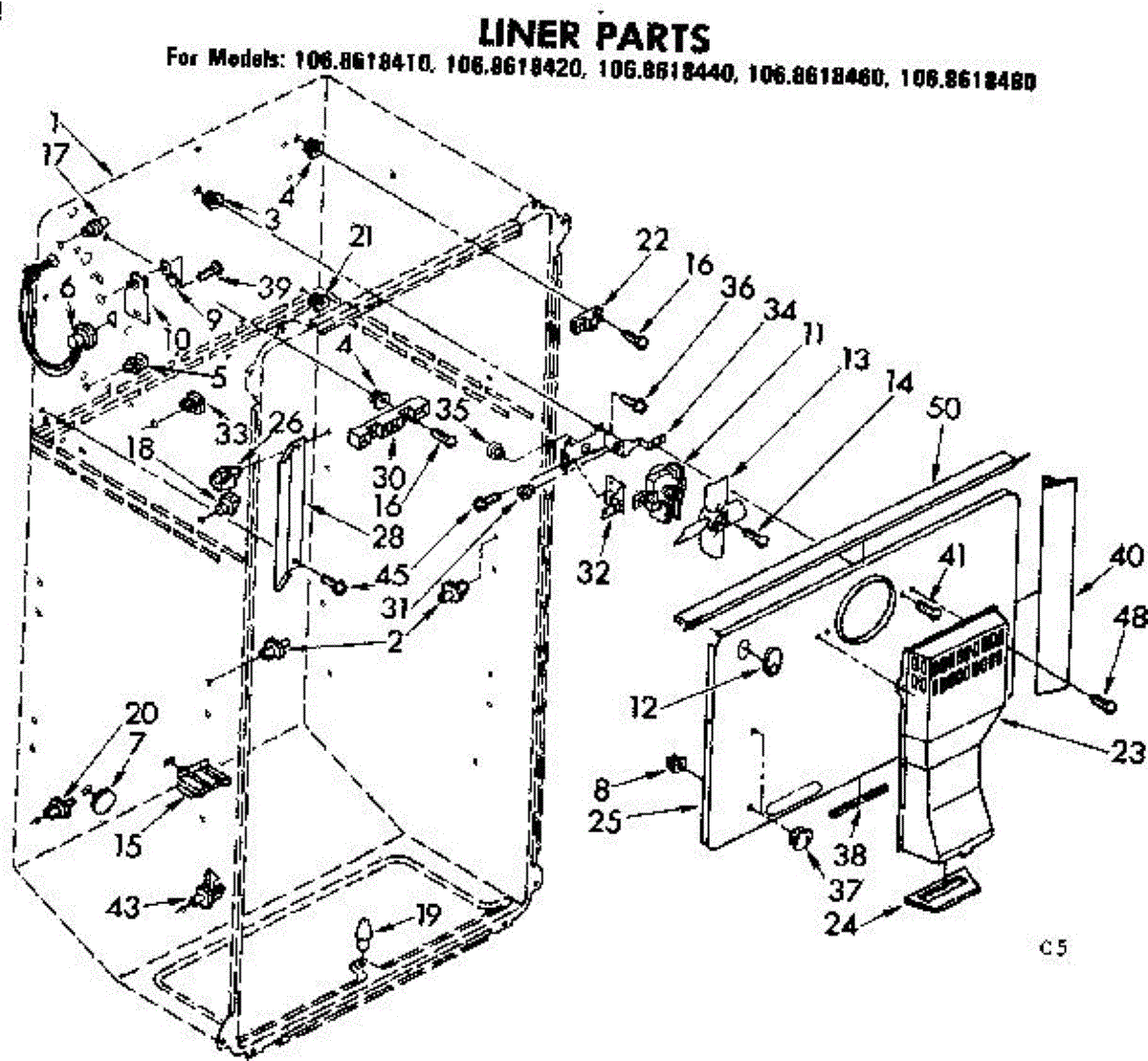 This screw is used to secure the handle end cap to the center of the door. The screw size measures 8-18 x 1/2 inches.