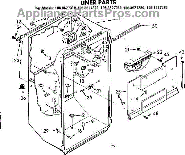 Parts for Kenmore 106.8627340 (1068627340, 106 8627340): Liner Parts