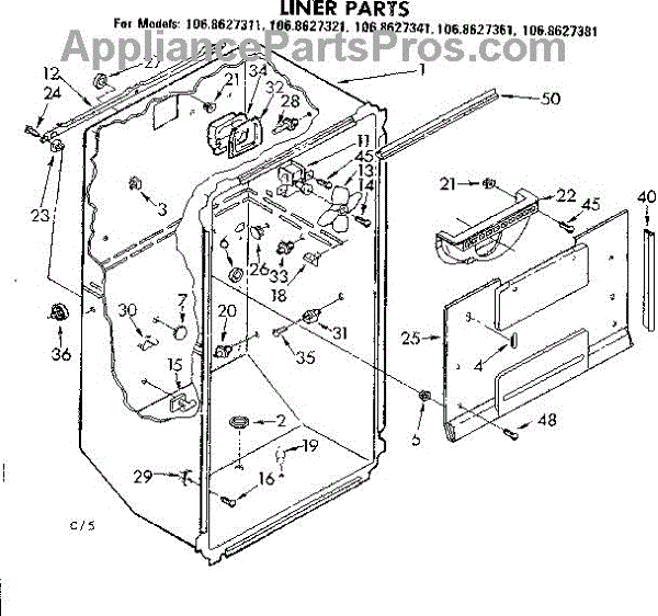 Parts for Kenmore 106.8627341 (1068627341, 106 8627341): Liner Parts