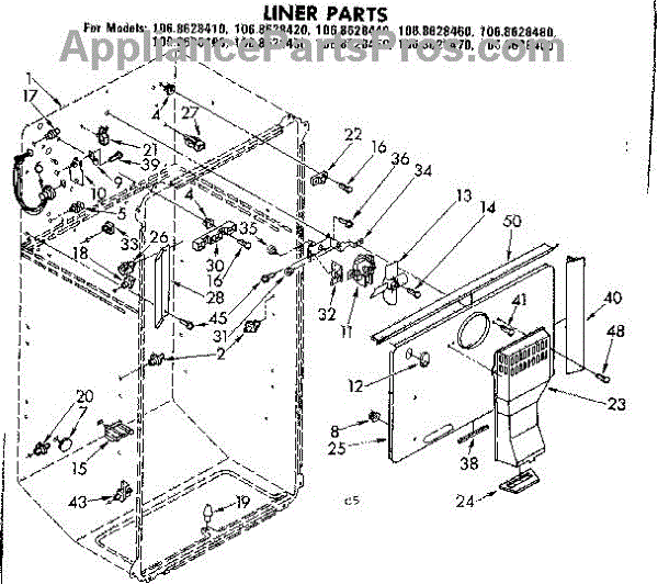 Parts for Kenmore 106.8628430 (1068628430, 106 8628430): Liner Parts