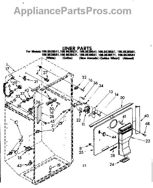 Parts for Kenmore 106.8638521 (1068638521, 106 8638521): Liner Parts