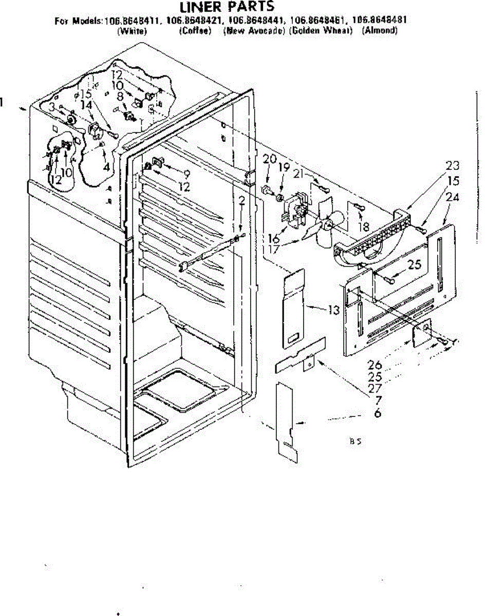 Parts for Kenmore 106.8648441 (1068648441, 106 8648441): Liner Parts