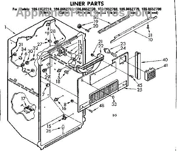 Parts for Kenmore 106.8652730 (1068652730, 106 8652730): Liner Parts