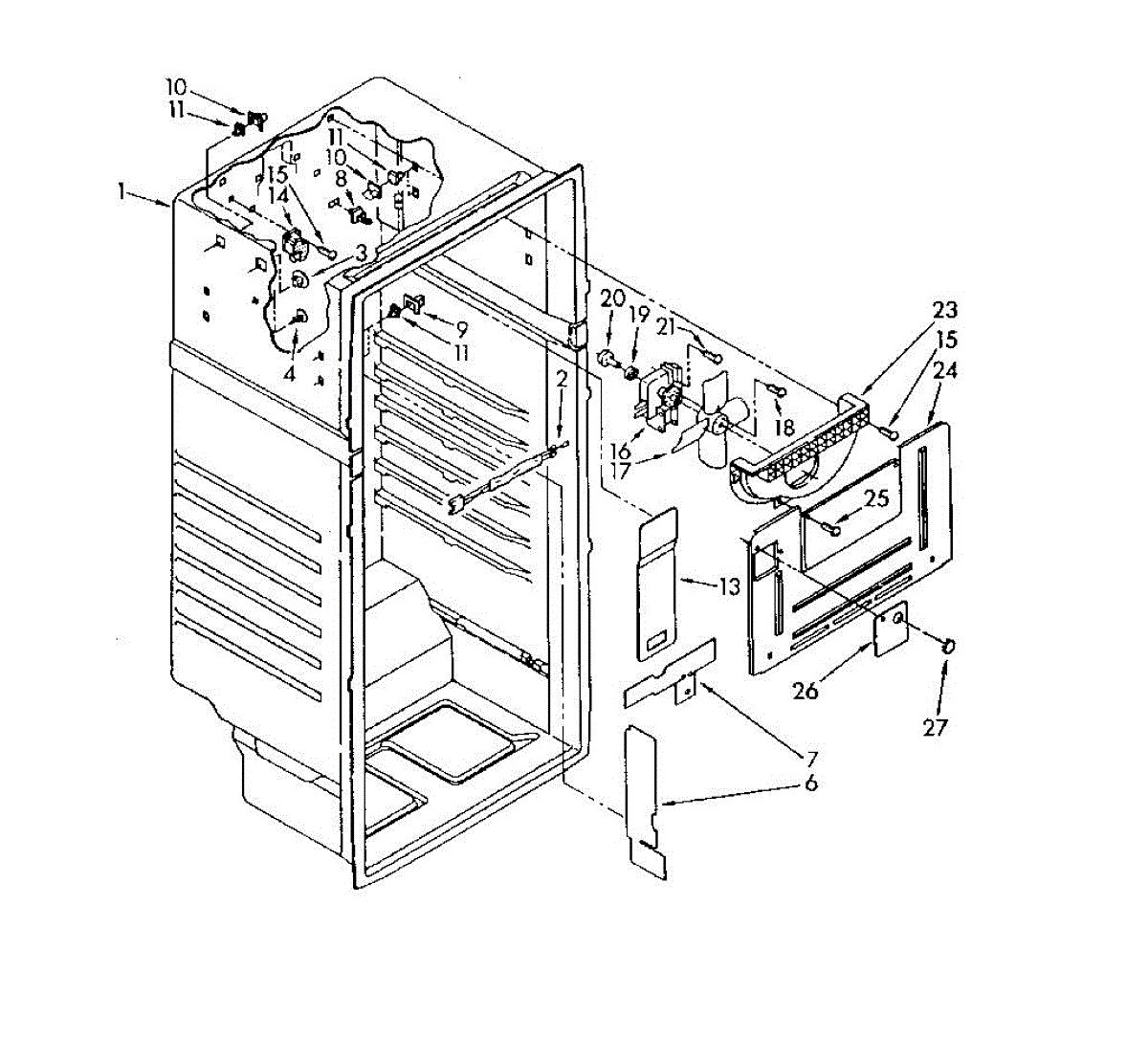 This hole cover seals an access/opening in the refrigerator evaporator housing to help maintain proper airflow and prevent moisture or frost from entering the cabinet. A simple replacement that restores the evaporator enclosure's intended seal. What it does: