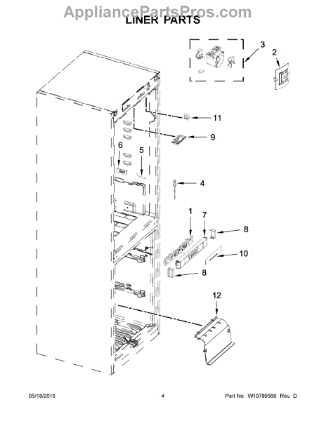 Parts for Kitchenaid KBBX104EPA0: 03 - Liner Parts