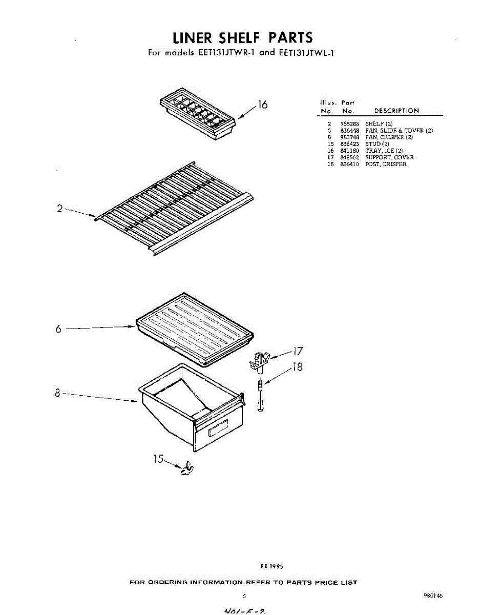 Parts for Whirlpool EET131JTWR1: 05 - Liner Shelf Parts