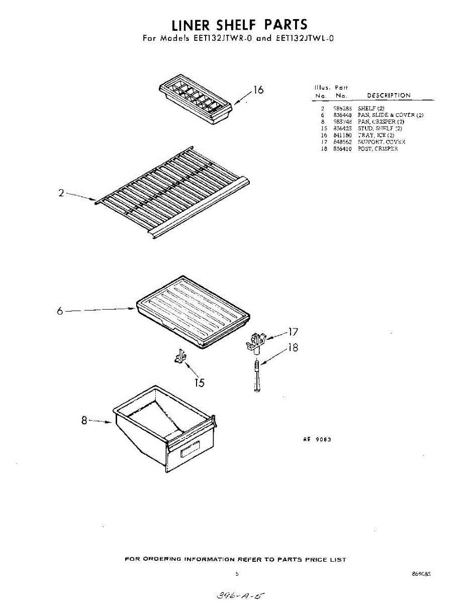 Parts for Whirlpool EET132JTWR0: 05 - Liner Shelf Parts