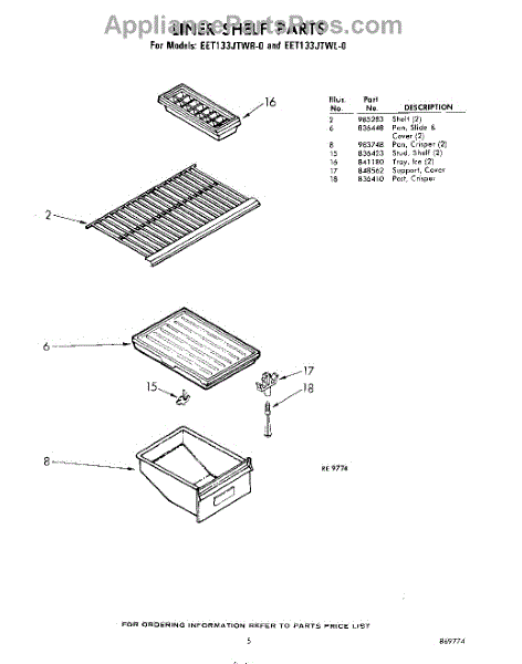Parts for Whirlpool EET133JTWR0: 05 - Liner Shelf Parts