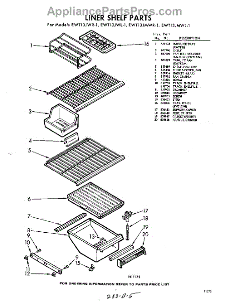 Parts for Whirlpool EWT13JMWR1: 05 - Liner Shelf Parts