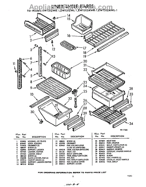 Parts for Whirlpool EWT51ZMWR1: 05 - Liner Shelf Parts