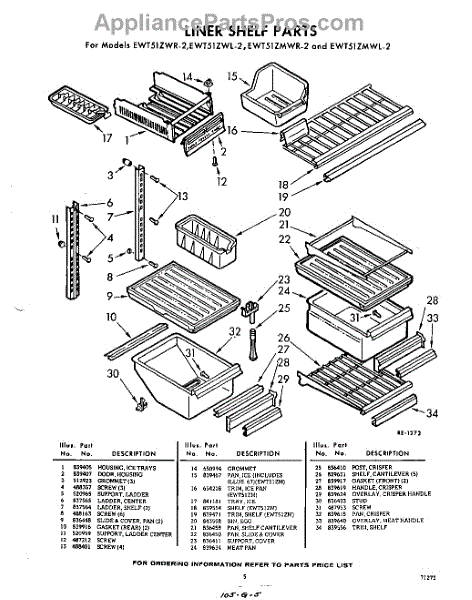 Parts for Whirlpool EWT51ZMWR2: 05 - Liner Shelf Parts