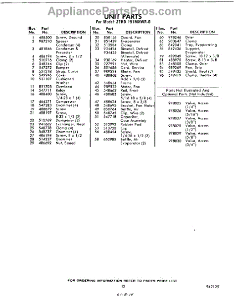 Parts for Whirlpool 3EHD191MKWR0: 13 - Lit / Optional Parts