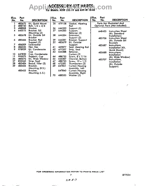 Parts for Whirlpool AHFW1040: 07 - Lit / Optional Parts
