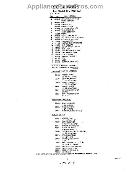 Parts for Whirlpool EEV200NW1: 05 - Lit / Optional Parts