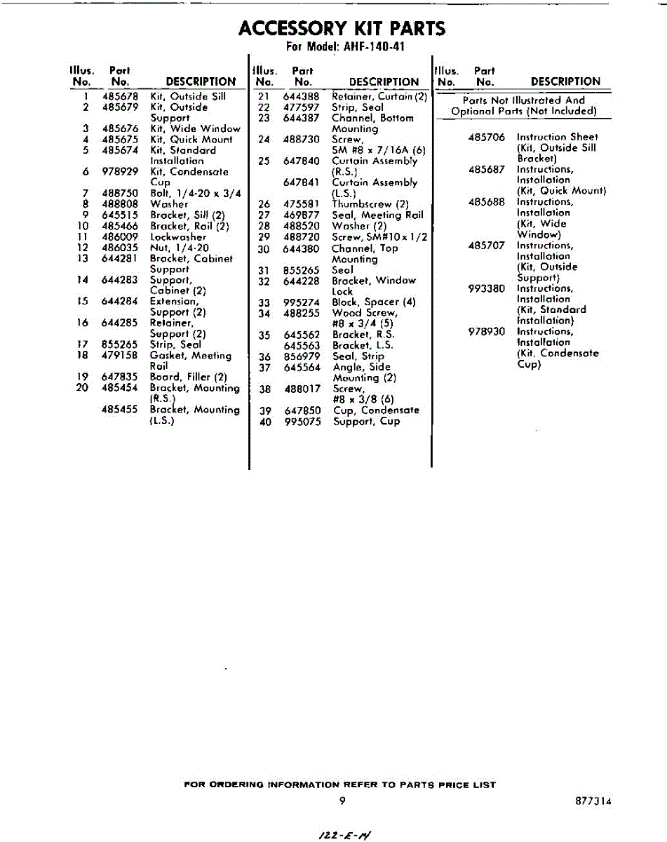 Parts for Whirlpool AHF14041: 09 - Lit / Optional Parts