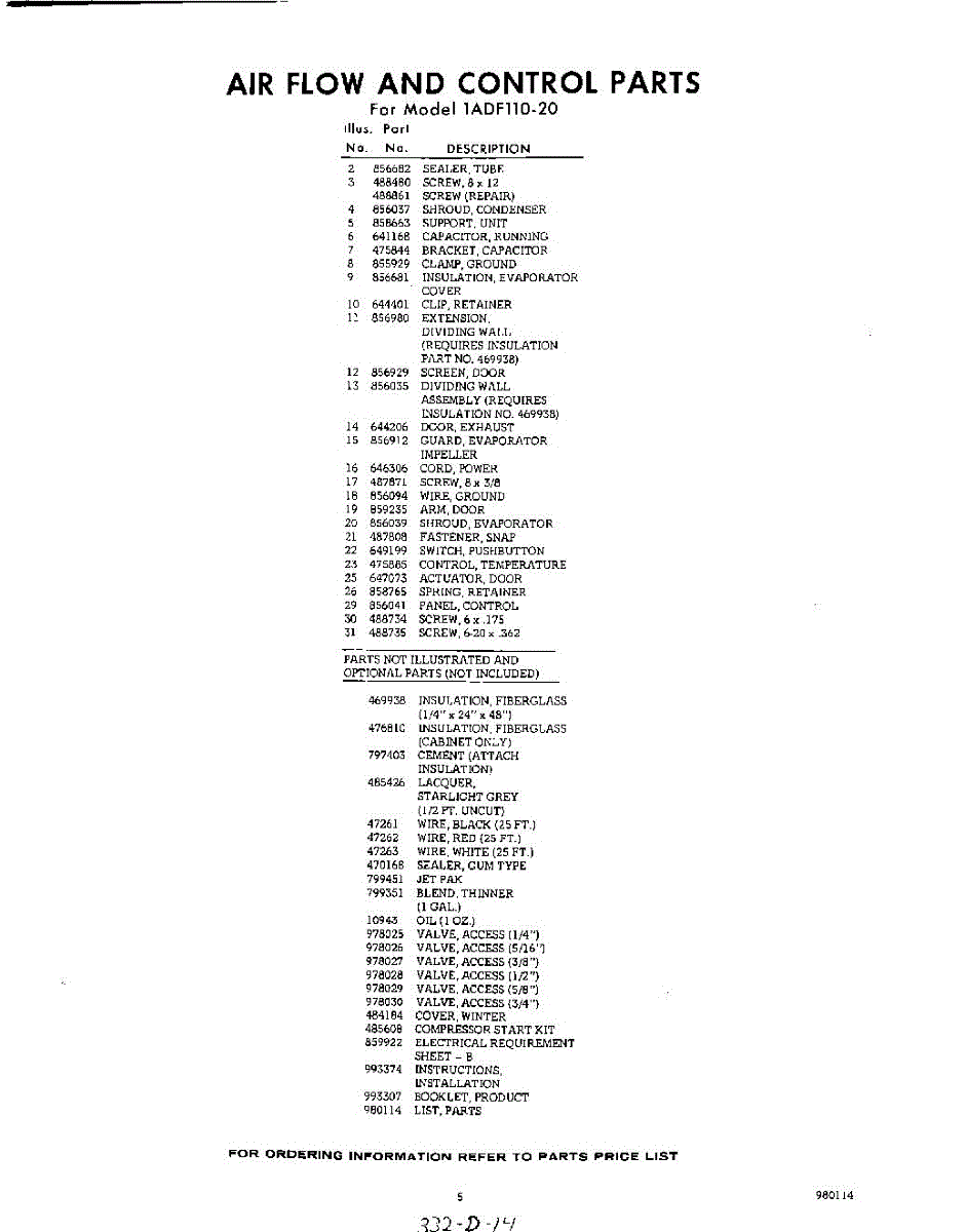 Parts for Whirlpool 1ADF11020: 05 - Lit / Optional Parts