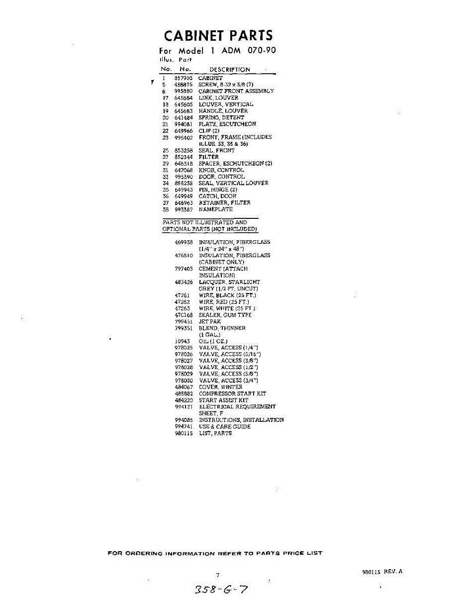 Parts for Whirlpool 1ADM07090: 07 - Lit / Optional Parts