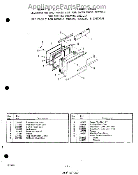 Parts for Whirlpool 2362B2A: 07 - Lit / Optional Parts