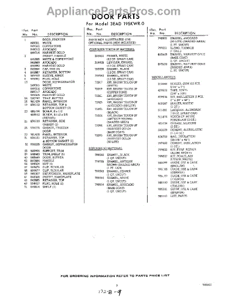 Parts for Whirlpool 3EAD19SKWR0: 09 - Lit / Optional Parts