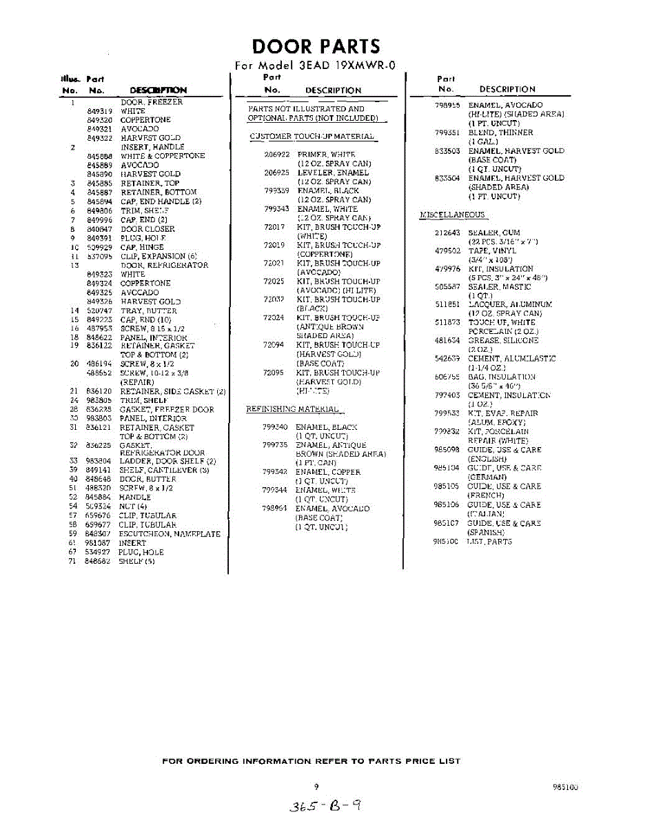 Parts for 3EAD19XMWR0