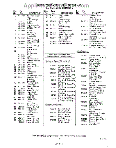 Parts for Whirlpool 3EHD191MKWR0: 09 - Lit / Optional Parts