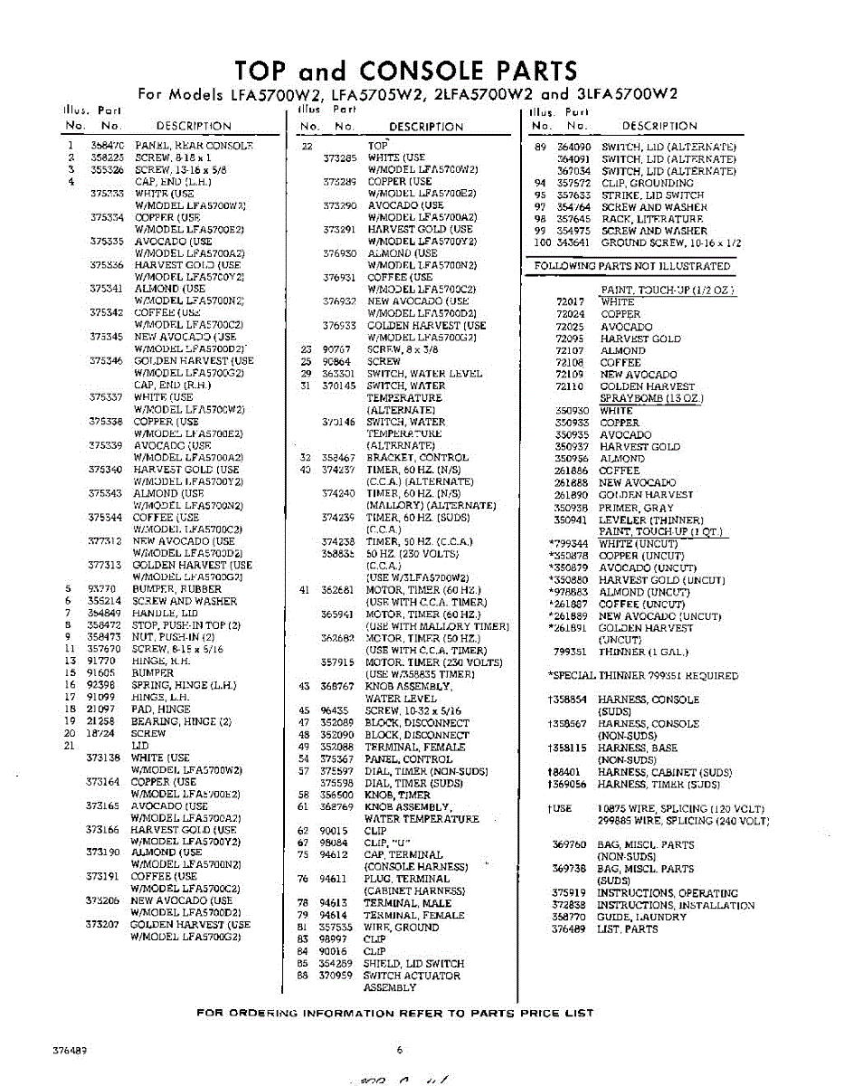 Parts for Whirlpool 3LFA5700W2: 06 - Lit / Optional Parts