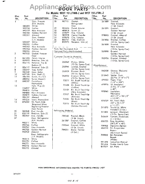 Parts for Whirlpool 9EET151JTWL2: 11 - Lit / Optional Parts