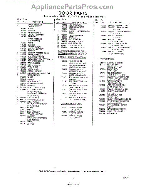 Parts for Whirlpool 9EET151JTWR1: 11 - Lit / Optional Parts