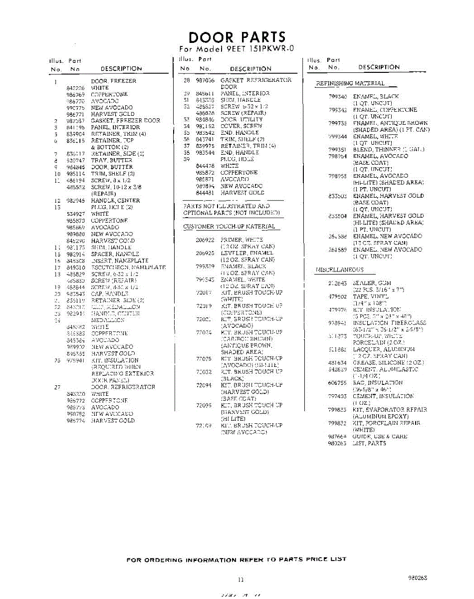 Parts for 9EET151PKWR0