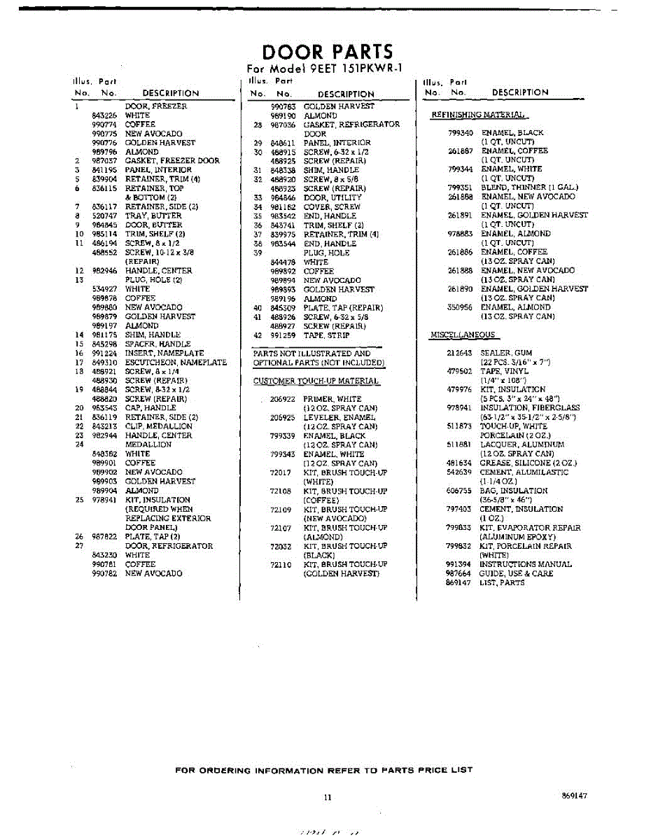Parts for 9EET151PKWR1