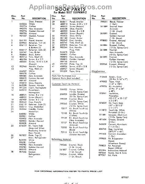 Parts for Whirlpool 9EET151PKWR2: 11 - Lit / Optional Parts