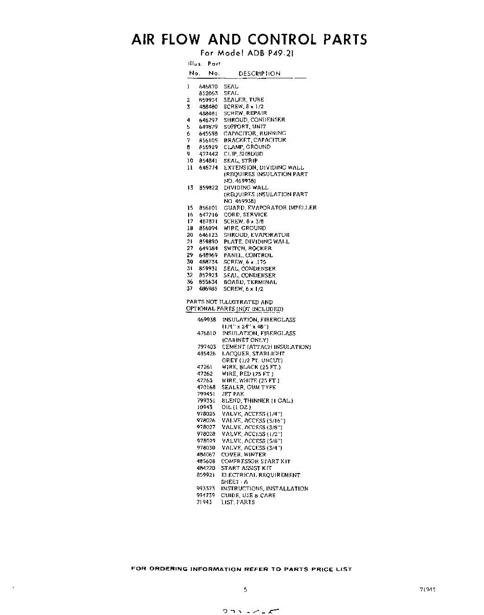 Parts for Whirlpool ADBP4921: 05 - Lit / Optional Parts