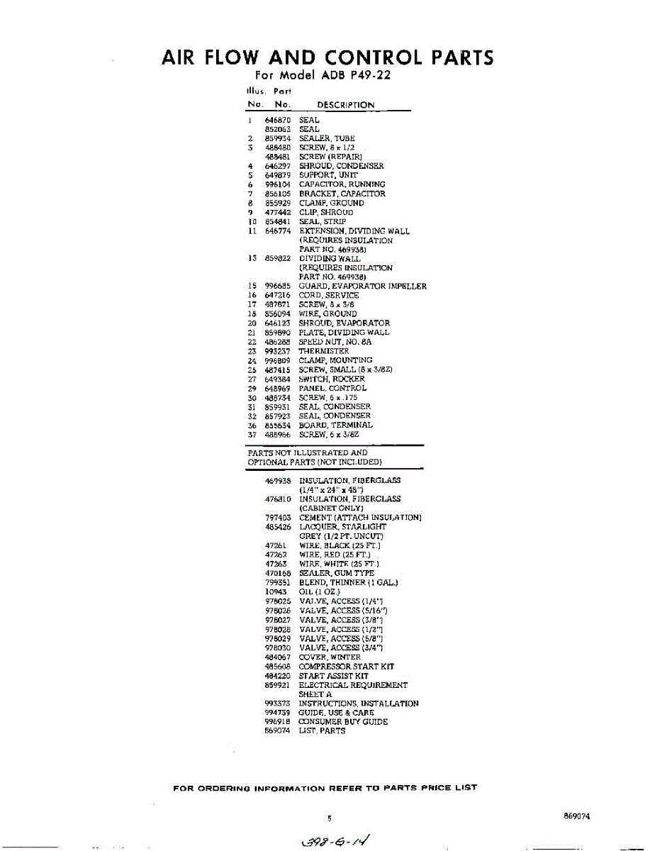 Parts for Whirlpool ADBP4922: 05 - Lit / Optional Parts
