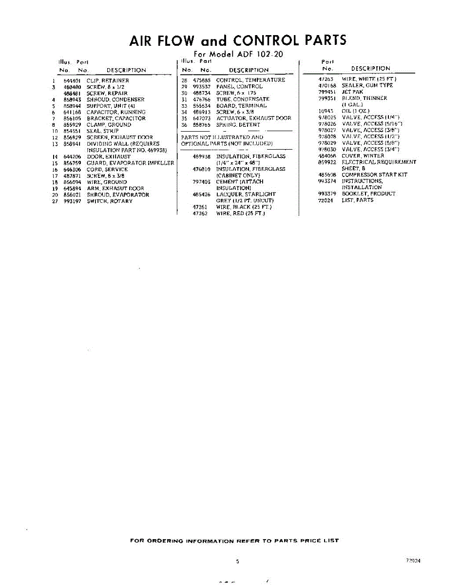 Parts for Whirlpool ADF10220: 05 - Lit / Optional Parts