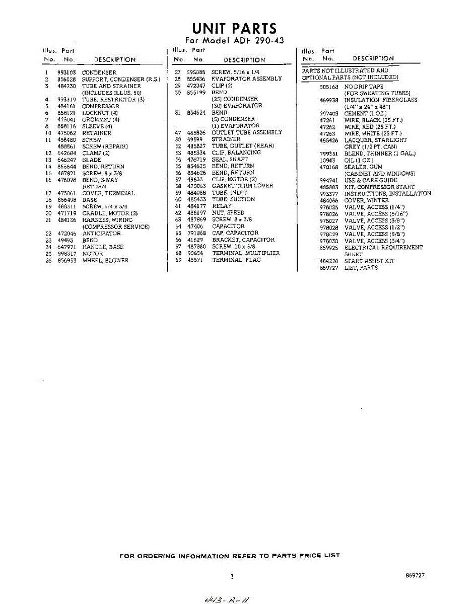 Parts for Whirlpool ADF29043: 03 - Lit / Optional Parts