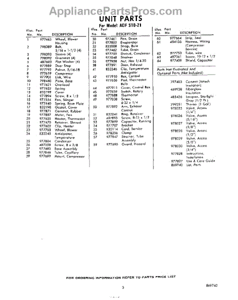 Parts for Whirlpool ADFS1021: 03 - Lit / Optional Parts