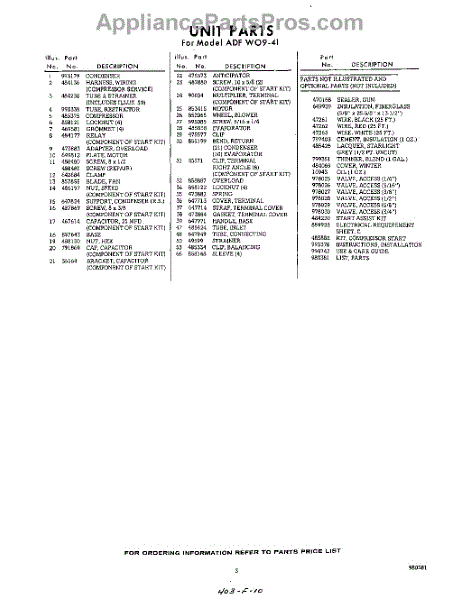 Parts for Whirlpool ADFW0941: 03 - Lit / Optional Parts
