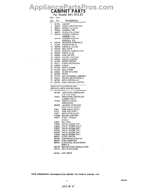 Parts for Whirlpool ADJ07522: 03 - Lit / Optional Parts