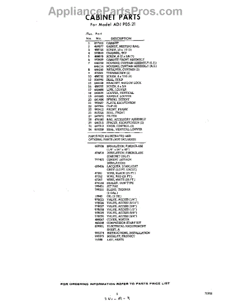 Parts for Whirlpool ADJP0521: 03 - Lit / Optional Parts