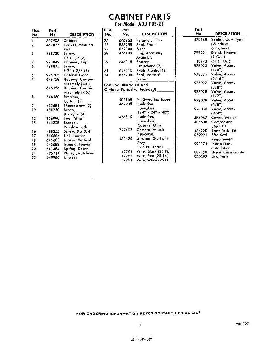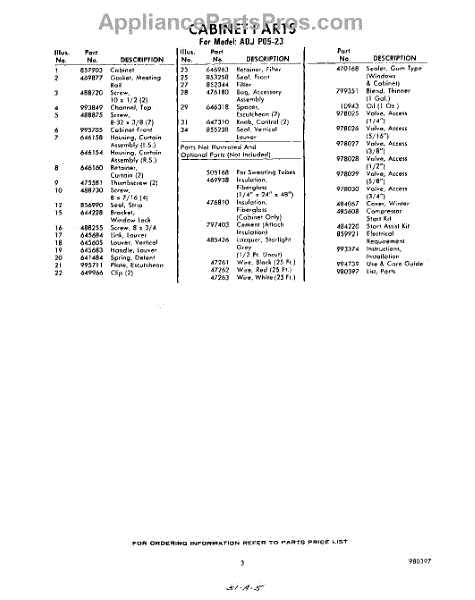 Parts for Whirlpool ADJP0523: 03 - Lit / Optional Parts