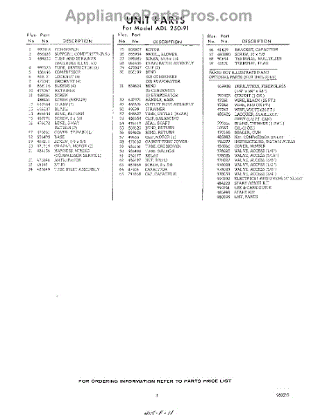 Parts for Whirlpool ADL25091: 03 - Lit / Optional Parts