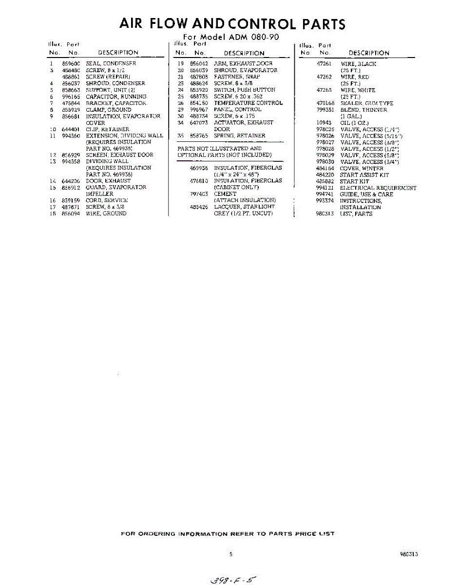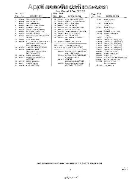 Parts for Whirlpool ADM08090: 05 - Lit / Optional Parts